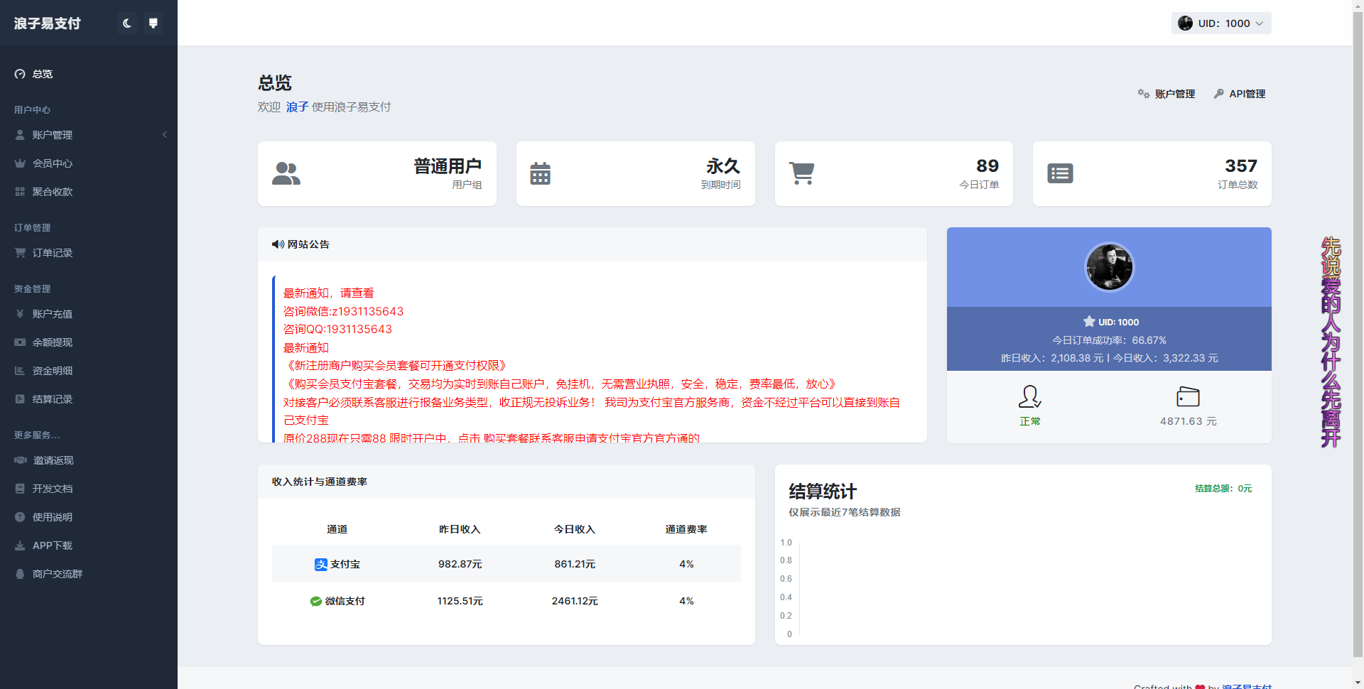 聚合支付平台,以信誉求市场,以稳定求发展,行业内最安全,简单易用,专业的技术团队,最放心的免签约支付平台。费率低至0.5%、会员费率更低!!;